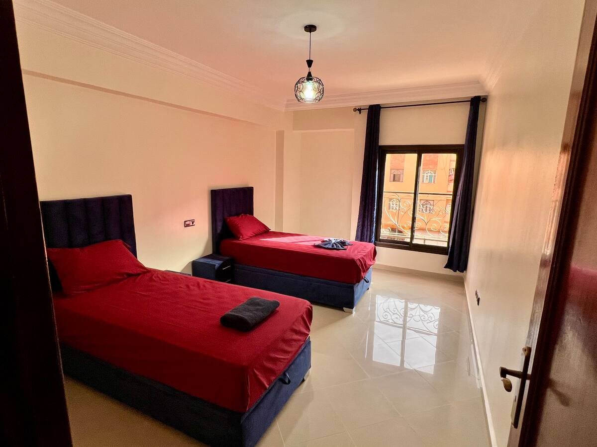 Depuis le balcon ou la terrasse de cet appartement Hébergement haut de gamme à Marrakech , laissez-vous séduire par une vue panoramique exceptionnelle sur Marrakech, la célèbre ville rouge. Vous apprécierez le spectacle quotidien offert par les toits traditionnels en terre cuite, les ruelles animées, ainsi que les jardins et palmeraies qui apportent une touche de verdure au paysage urbain.